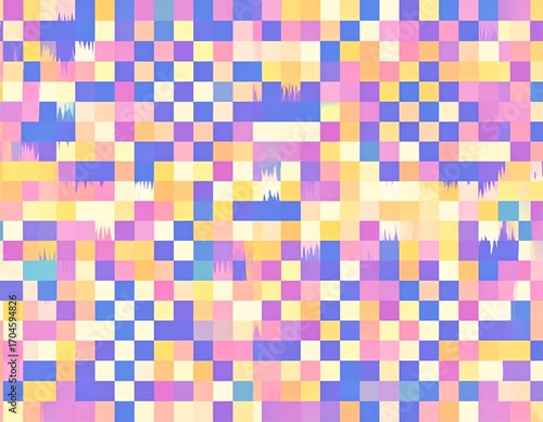 © yohaku, Fototapeta premium ピンクとイエローが映えるカラフルなモザイクパターン