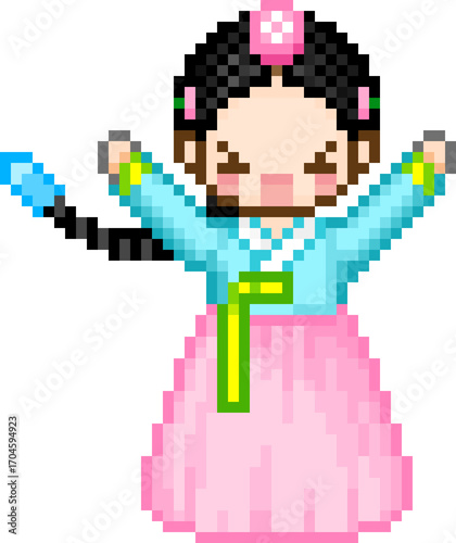 Obraz premium 픽셀 한복 캐릭터