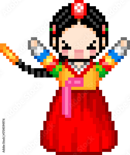 Obraz premium 픽셀 한복 캐릭터