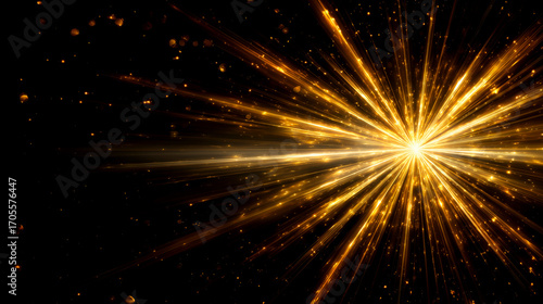© izzyU, Fototapeta premium まばゆい金色の放射状の光線(黒背景)