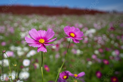 © Tocchy S, Obraz premium 秋を彩るコスモスとコキアの紅葉