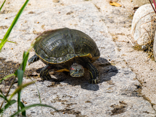© ichihira, Fototapeta premium 日光浴するアカミミガメ