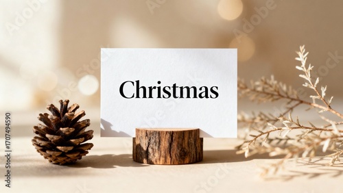 © Ko, Naklejka premium 미니멀크리스마스카드우드스탠드솔방울장식
