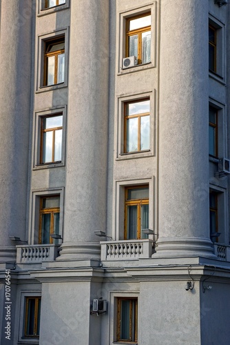 © butus, Fototapeta premium часть серого здания с колоннами и окнами