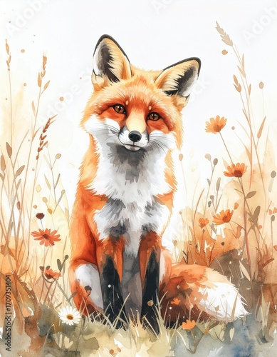 © bethko., Obraz premium 水彩画のかわいいキツネのイラスト