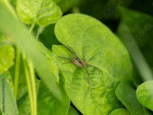 Fototapeta premium 野原の葉に乗る蜘蛛