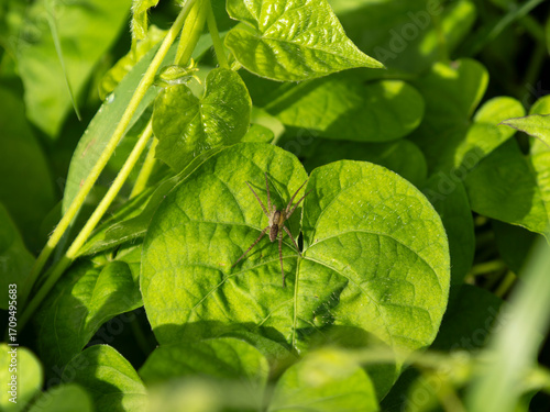 Fototapeta premium 野原の葉に乗る蜘蛛