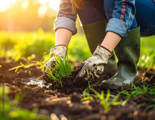© Motoko, Fototapeta premium 梅雨の合間に草むしりをする長靴の足元