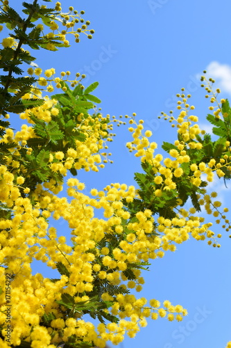 Fototapeta premium 青空とアカシアの花、クローズアップ