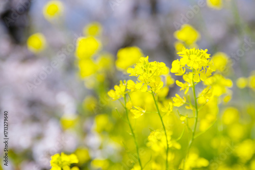 Obraz premium 光を受ける菜の花と桜の玉ボケ(桜堤サブセンター)