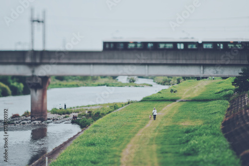 © beeboys, Obraz premium 電車と河川敷の風景
