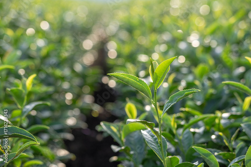 © officeU1, Obraz premium 逆光に照らされる狭山茶畑の茶葉