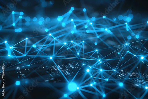 © A-photos, Obraz premium デジタルネットワークの抽象背景(ノードとリンクのひかり)