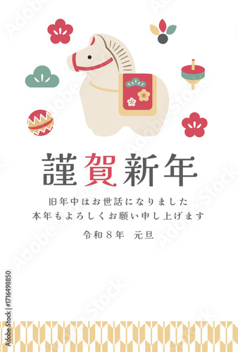 Fototapeta premium 午年年賀状テンプレート 縁起物
