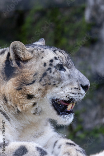 Fototapeta premium 口を開けて座っているユキヒョウの横顔