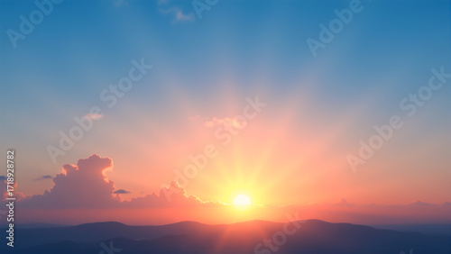 © utsuki_kaz, Fototapeta premium 山に沈む太陽