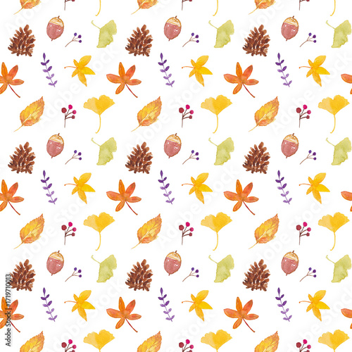 © Daisy, Obraz premium 水彩落ち葉パターン