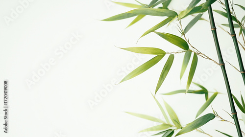Fototapeta premium 竹の葉が余白に映えるミニマルな背景素材