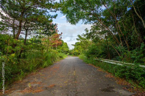 Fototapeta premium 緑の木々に囲まれた道