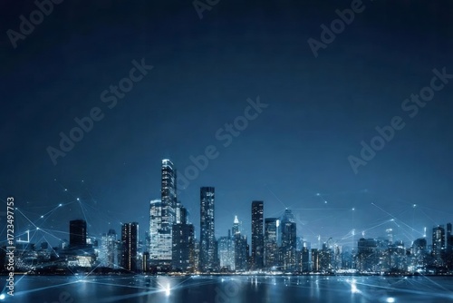 © タンロック, Obraz premium 夜空の星明かりの下に輝く都会のスカイライン