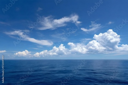 Obraz premium 青空と白い雲と青い海の広大な風景