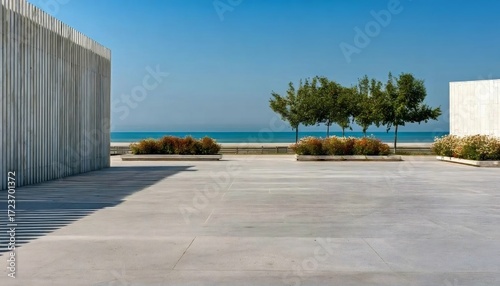 Fototapeta premium 木々と青い空のある海辺の空き地