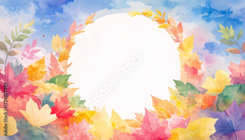 © AME, Obraz premium 紅葉したカラフルな秋の葉っぱのフレーム