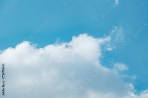 © tenpadasi, Fototapeta premium ふわふわした薄い雲と夏のようなさわやかな青空 風に流れる雲と美しい天気 秋の空