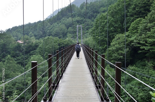 © goro20, Obraz premium 濃霧の山道を歩く登山者