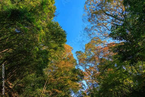 Fototapeta premium 紅葉した三波渓谷の樹木