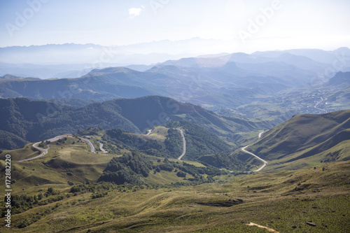 © Ivan_Gatsenko, Fototapeta premium Горная панорама, перевал, красивый вид на горный хребет, Северный Кавказ