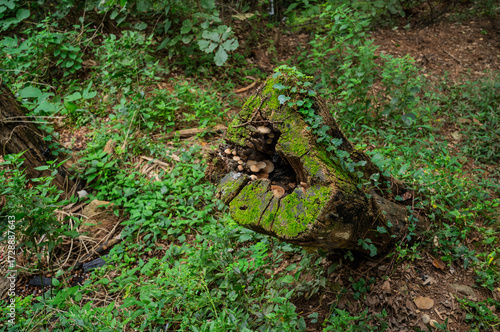 © kongbaguni, Fototapeta premium 나무 그루터기와 버섯