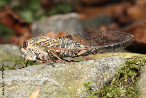 © APOLLO, Obraz premium 岩の上に張り付く【ツクツクボウシ】
