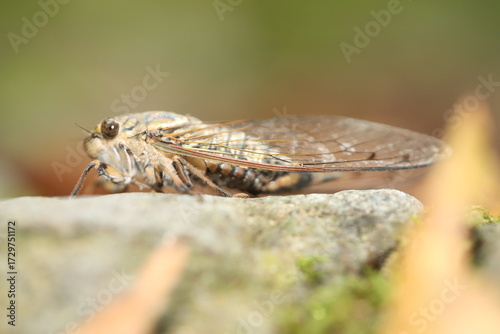 © APOLLO, Obraz premium 岩の上に張り付く【ツクツクボウシ】