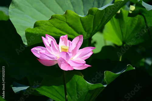 Fototapeta premium 清らかに咲き誇る古代ハス。 2025年7月22日.25日東京都町田市薬師池公園で撮影