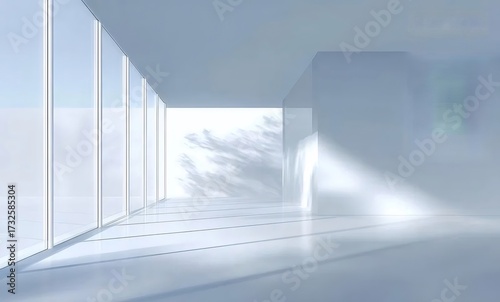 © Sim1pleStock, Obraz premium 明るい白い部屋のインテリアと窓から見える木のシルエット