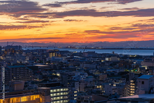 © photop5, Obraz premium 神戸の夜明け(長田区~兵庫区~空港島) 神戸市長田区にて