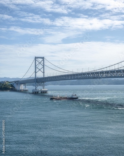 © Hiroki Kobayashi, Fototapeta premium 兵庫県南あわじ市 鳴門大橋と渦潮のある風景