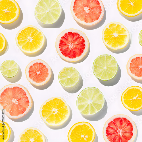© Somi, Fototapeta premium 시트러스 과일 단면 컬러풀 패턴 배경