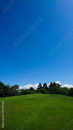 © Kana Design Image, Fototapeta premium 青空の下の公園にある丸い広場と木