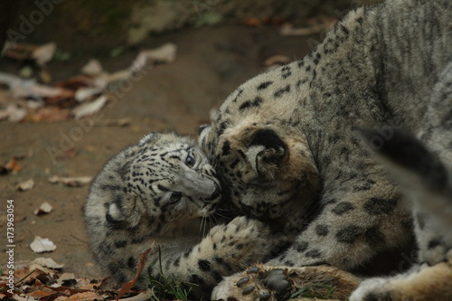 Obraz premium ユキヒョウの親子