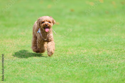 © ぬいぐるみ王国, Fototapeta premium ドッグランで遊んでいるトイ・プードル