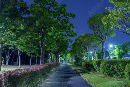 © hiro, Fototapeta premium 電柱と電線が描く夜空 — 郊外の散歩ルート