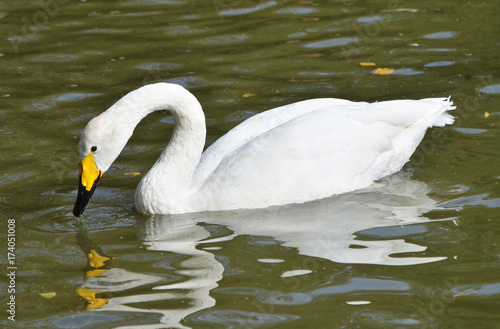 Naklejka premium Лебедь плывёт по озеру.