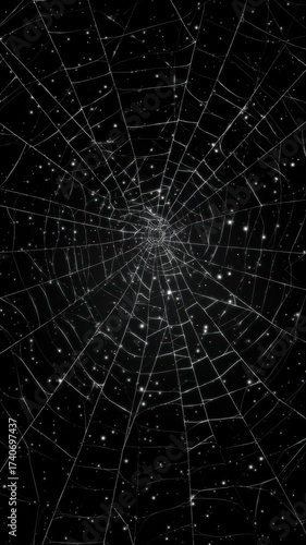 Fototapeta premium 星空のように輝く蜘蛛の巣。幻想的な背景やデザイン素材に最適なイメージ。