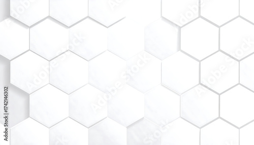 © birth7, Naklejka premium 白い紙の質感で構成された六角形のパターンが立体的に浮かぶミニマルな壁紙背景