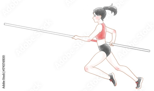 Obraz premium 棒高跳びで助走する女子の水彩風イラスト