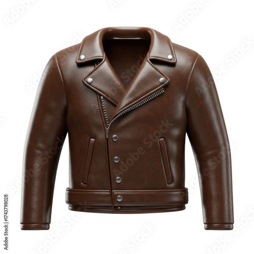 © AnilaStudio, Naklejka premium ブラウンレザーライダースジャケットのプロダクトショット