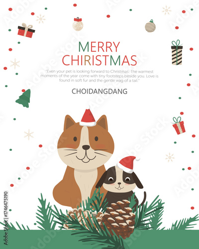 Naklejka premium 귀여운 강아지와 행복한 크리스마스