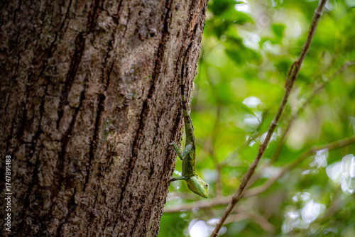 Obraz premium 奄美大島の亜熱帯雨林、オキナワキノボリトカゲ